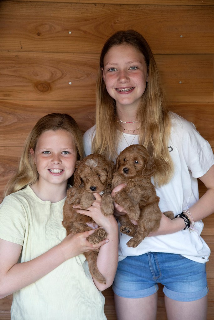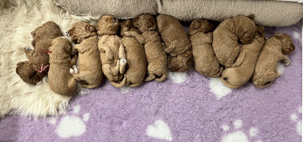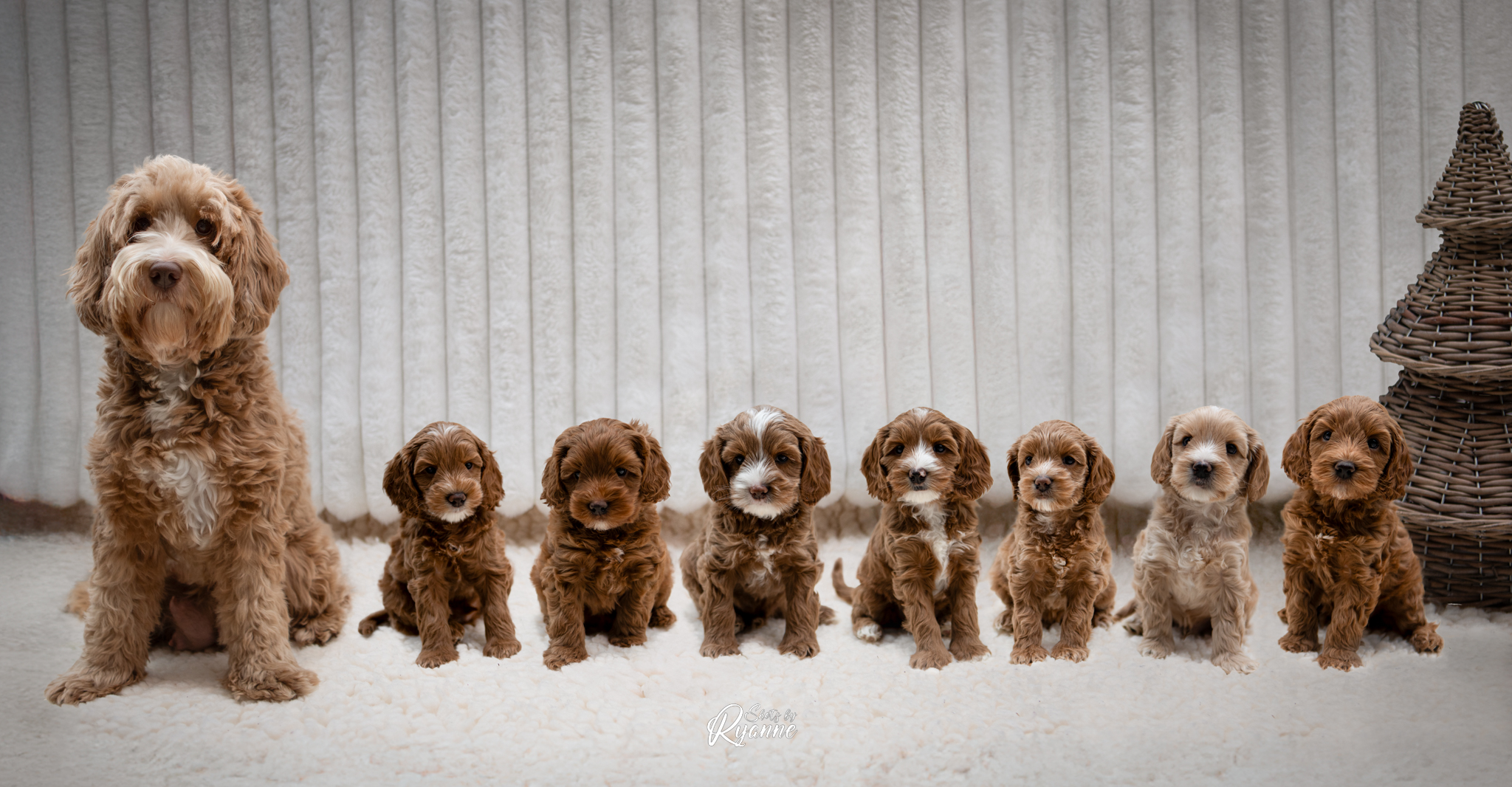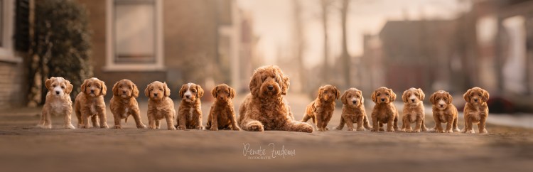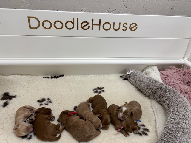 De pupjes zijn geboren! Nestje van Bella is 4 februari 2025 geboren, 5 pupjes ( 2 teefjes en 3 reutjes ). nest van Nova 2 februari 2025 ( 10 dames en 2 heren ). Het gaat heel goed hier in DoodleHouse. Soms wordt er een pupje van Nova, om haar te ondersteunen bij Bella gelegd. Dat gaat goed. We gaan weer heel veel gezinnen blij maken met een prachtig doodletje. Daar doen we het voor! Volgend nestje zal van Suzy of Loua zijn. We verwachten hun loopsheid eind 2025. Inschrijven is nog mogelijk.